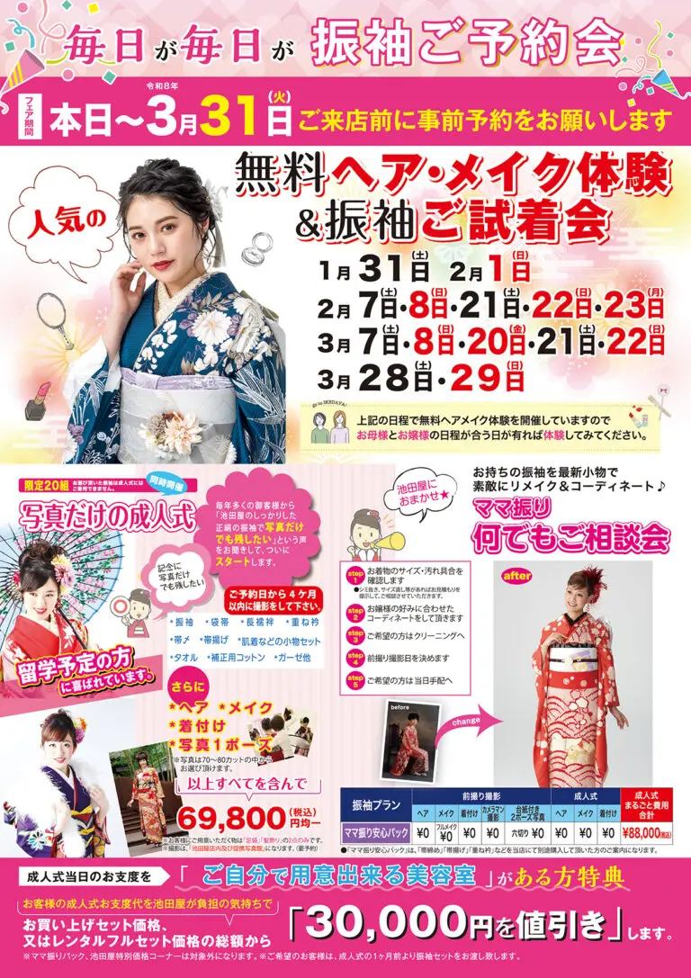 池田屋人気の「無料ヘアメイク体験」予約受付中