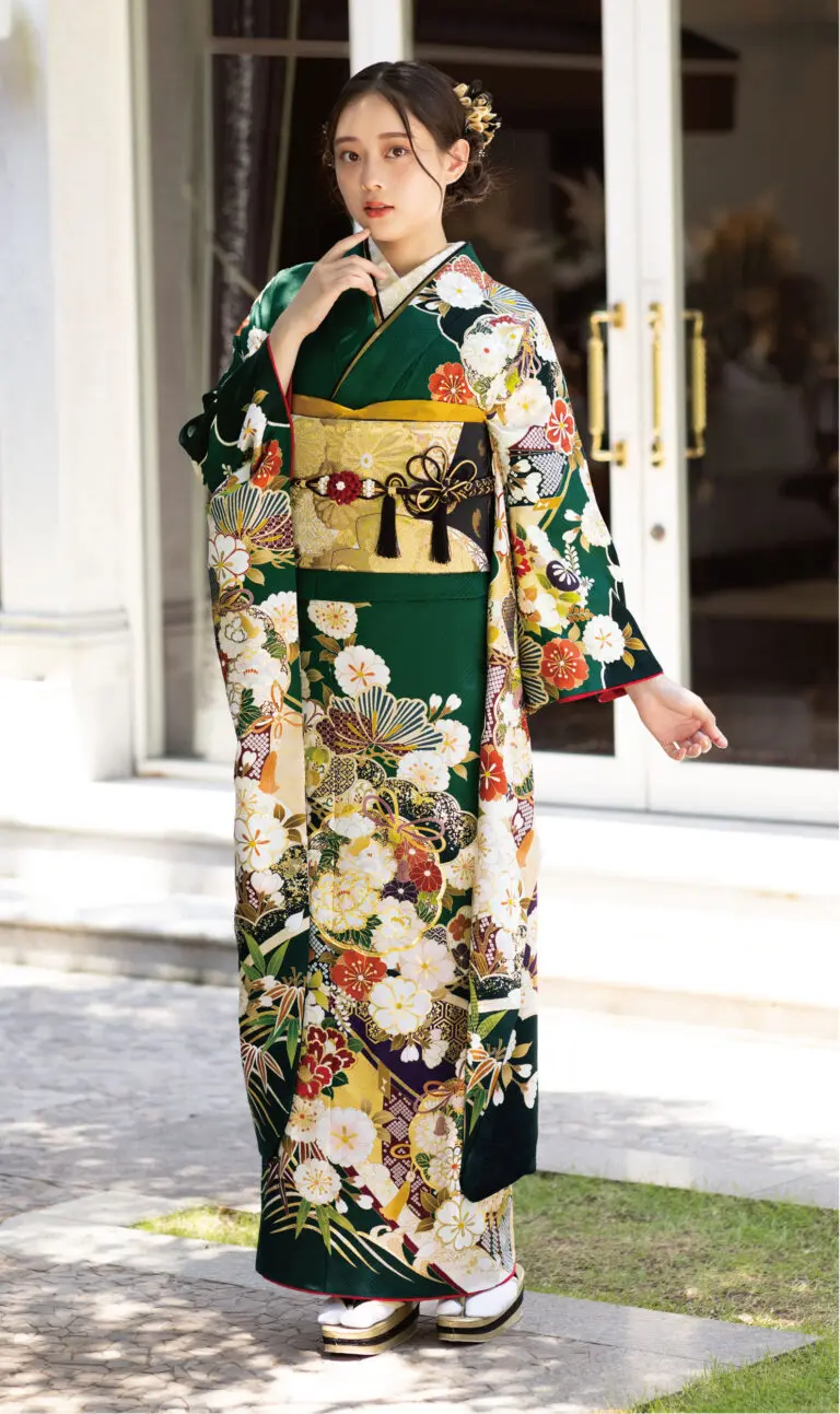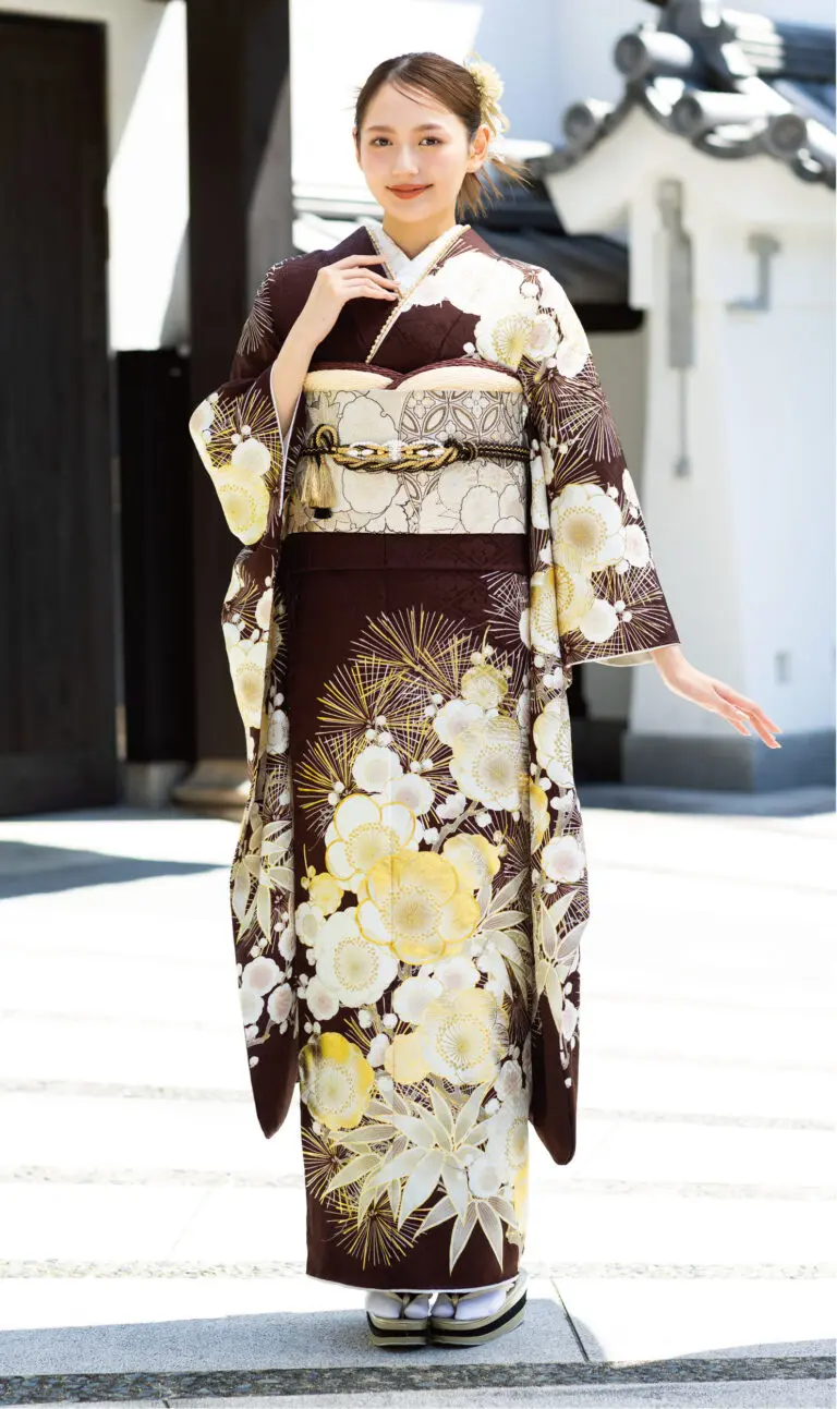 成人式に映える深赤えんじ×白牡丹柄の振袖